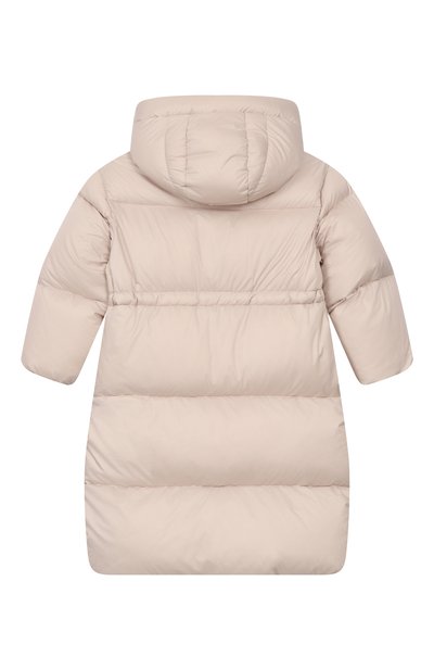 Пальто на гусином пуху выполнили из влагоотталкивающего нейлона Chamonix. Спереди разместили металлическую литеру H, а съемный регулируемый капюшон украсили брендированной пластиной. Модель с манжетами из полушерстяного трикотажа застегивается встречной молнией, а боковые карманы – кнопка ми.