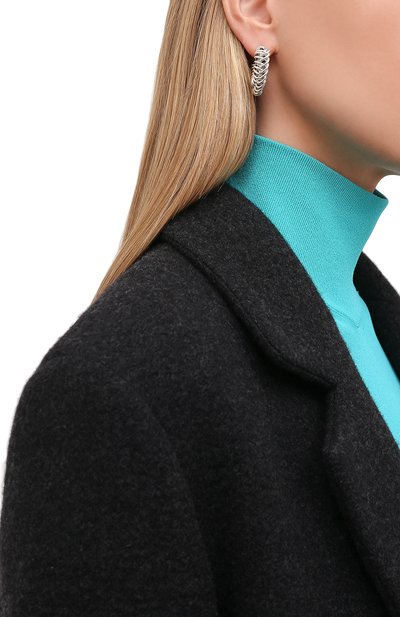 Скульптурные серьги в форме объемных плавников изготовили из стерлингового серебра 925 пробы. Визуально массивный, но легкий аксессуар фиксируется застежками-пусетами.