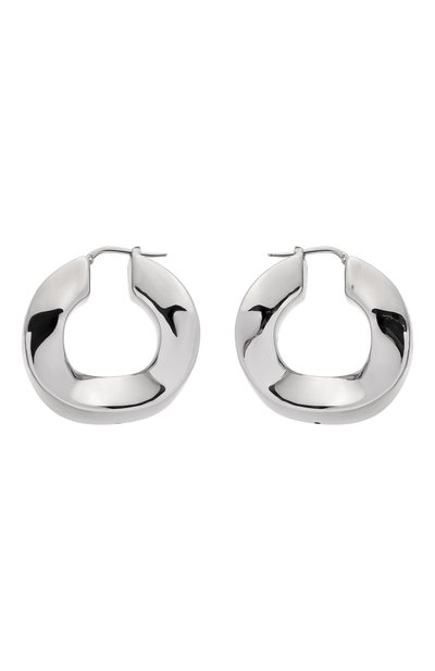 Серьги Knot в форме незамкнутых колец выполнили из стерлингового серебра с гальваническим покрытием 18-каратным золотом. Аксессуар с застежками-пусетами декорировали фирменным узлом.
