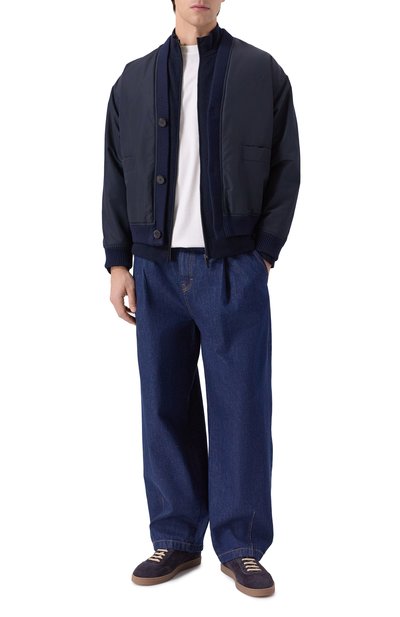 Для пошива джинсов с эластичной вставкой на поясе использовали хлопковый деним с добавлением лиоцелла и эластана. Модель с четырьмя карманами дополнили брендированным патчем сзади и фирменным ярлыком на ширинке.