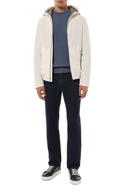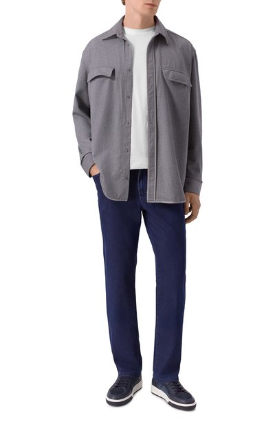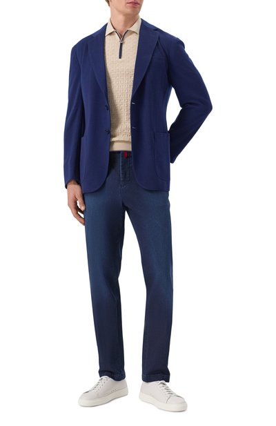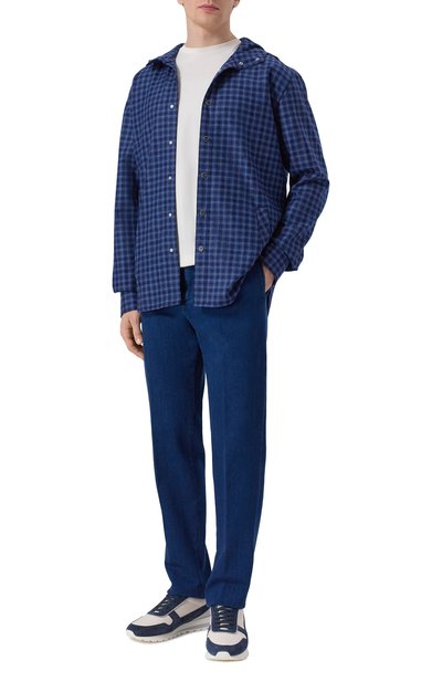 Для создания джинсов с четырьмя врезными карманами выбрали хлопковый деним стрейч с добавлением лиоцелла. Эластичный пояс декорировали брендированным патчем, а ширинку – ярлыком фирменного алого оттенка.