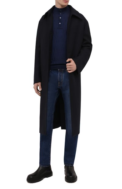 Джемпер с рифлеными манжетами, поясом и высоким воротом выполнили из кашемировой пряжи. Модель застегивается короткой молнией с круглым брендированным пуллером фирменного алого оттенка.