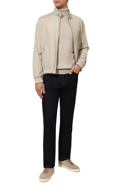 Джинсы с брендированным жакроном на поясе сзади украсили вышитым логотипом на шлевке и ярлыком фирменного алого оттенка спереди. Модель изготовили из эластичного хлопкового денима с добавлением полиэстера.