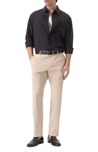 Пенни-лоферы Laurent со складками на круглом мысе выполнили из гладкой телячьей кожи. Перемычку на союзке правого изделия подчеркнули металлической монограммой Кассандра.