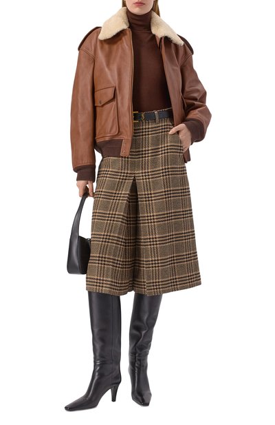 Для создания водолазки со спущенной линией плеч выбрали тонкий шерстяной трикотаж. Эластичные манжеты, пояс и горловину с отворотом выполнили в мелкий рубчик.