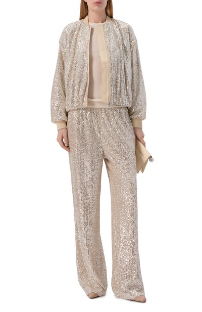 Бомбер C-Jilloi кроя Relaxed fit выполнили из стрейчевого полиэстера, расшитого пайетками. Куртку с рифлеными манжетами и воротником-стойкой дополнили двумя карманами.