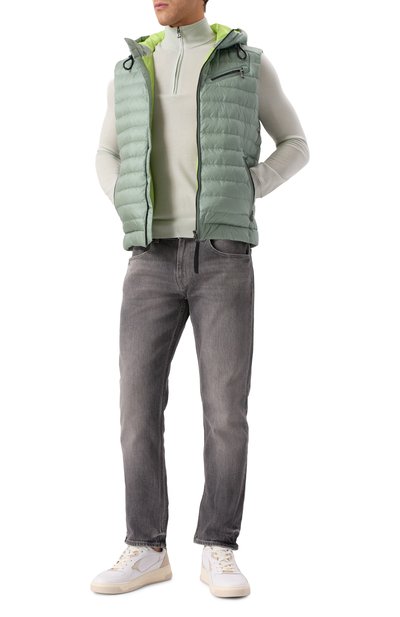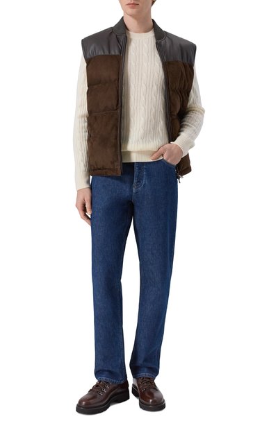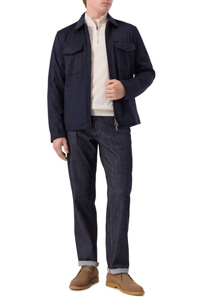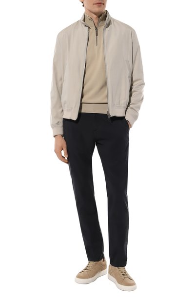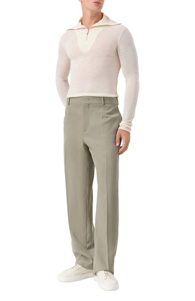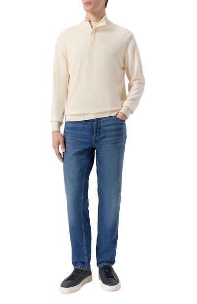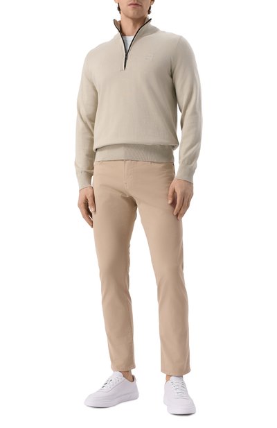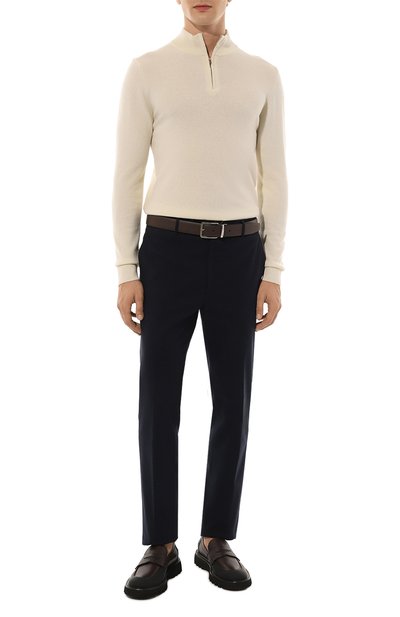 Джемпер с короткой молнией на воротнике-стойке выполнили из шерстяного трикотажа с добавлением кашемира. Сбоку модель дополнили брендированным ярлыком.