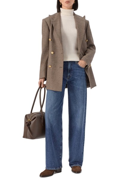 Выбеленные джинсы Playback с высокой посадкой, пятью карманами и боковыми разрезами изготовили из неэластичного денима. Модель декорировали серебристыми заклепками, вышивкой в виде фирменных крестов 3х4 и эмбле мой T-box.