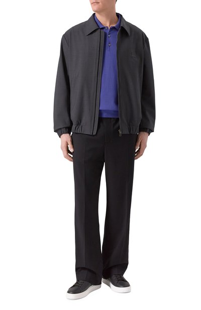 Поло с манжетами и поясом в мелкий рубчик выполнили из чистой шерсти. Модель с чуть смещенными назад плечевыми швами застегивается тремя пуговицами на нагрудной планке.