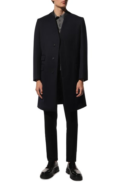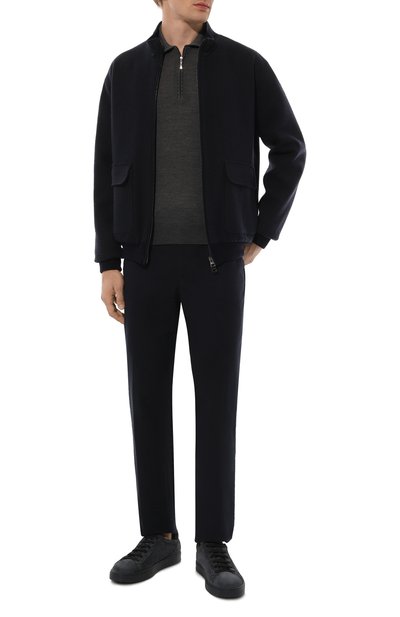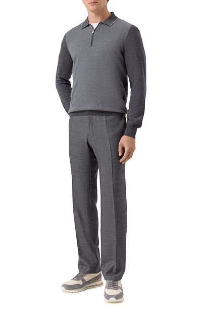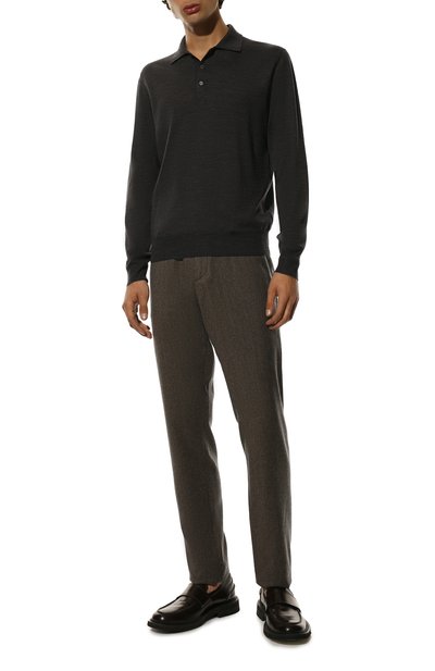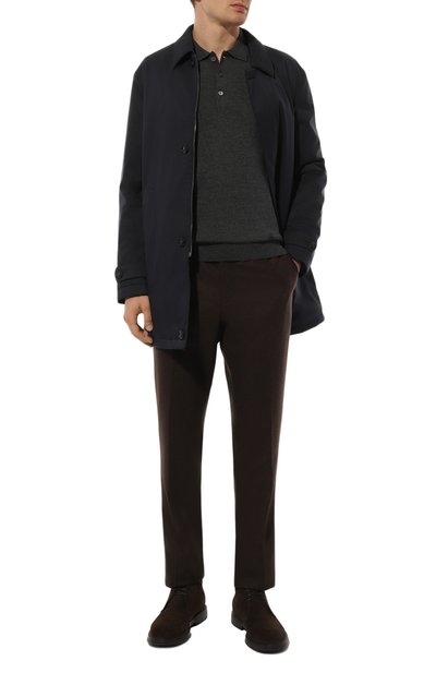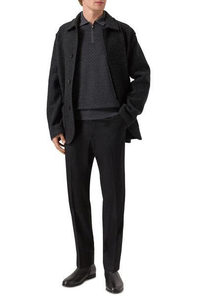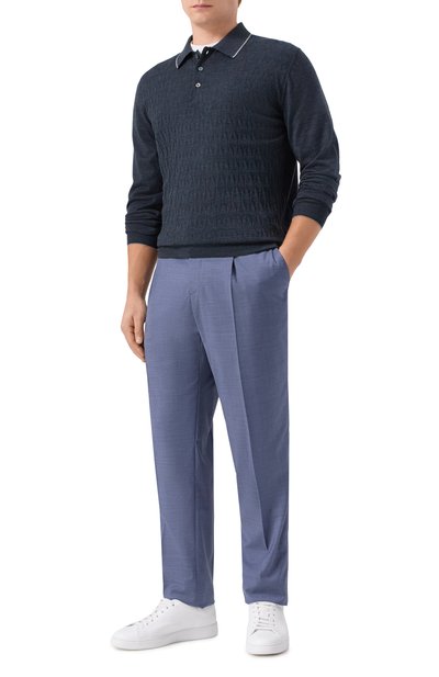 Поло с манжетами и поясом в мелкий рубчик выполнили из чистой шерсти. Модель с чуть смещенными назад плечевыми швами застегивается тремя пуговицами на нагрудной планке.