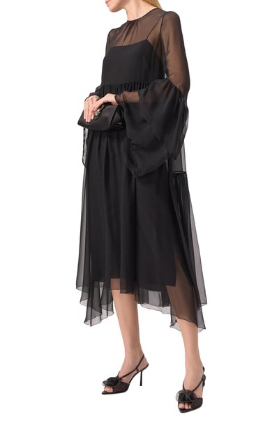 Босоножки Vittoria на высокой шпильке выполнили из сетки и телячьей кожи. Ремешок модели, как и перемычку на открытом квадратном мысе, дополнили кристальной пряжкой.