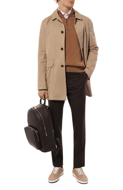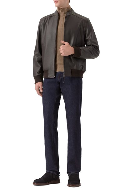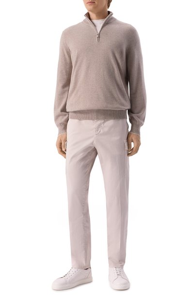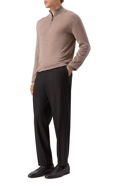 Джемпер из шерстяного джерси с добавлением полиамида застегивается молнией с брендированным пуллером. Модель с плоскими оверлочными швами декорировали фирменным металлическим октагоном.