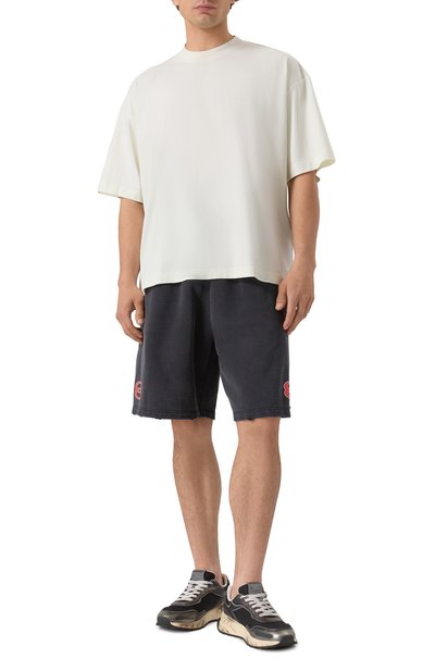 Футболку с контрастным логотипом спереди украсили словно потертым мотивом Scribble Diag Skate на спинке. Oversize-модель с круглой горловиной в рубчик изготовили из хлопка.
