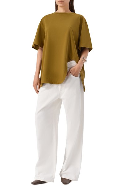 Для создания oversize-футболки, напоминающей спортивную экипировку, использовали комбинацию сетчатого и гладкого полиэстера. Принадлежность модели бренду обозначили брендированными нашивками на груди и спинке.