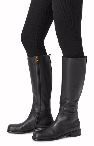 Сапоги Beak с зауженным мысом и широким голенищем сшили из гладкой телячьей кожи. Модель на высоком каблуке-конусе застегивается короткой боковой молнией.