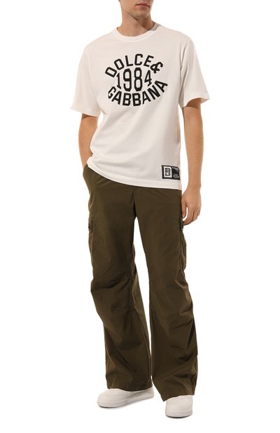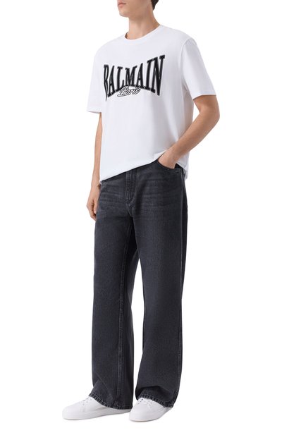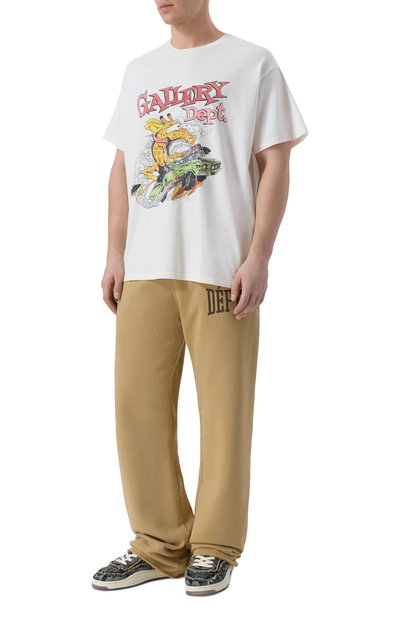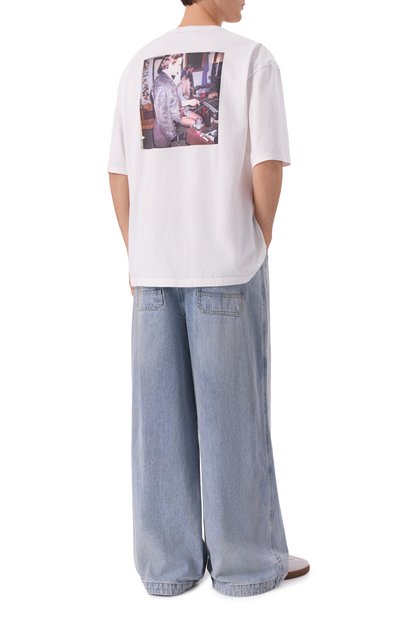 Футболку украсили выцветшей надписью Free спереди и логотипом из золотистого глиттера на спинке. Oversize-модель с круглой горловиной в рубчик изготовили из хлопкового джерси.