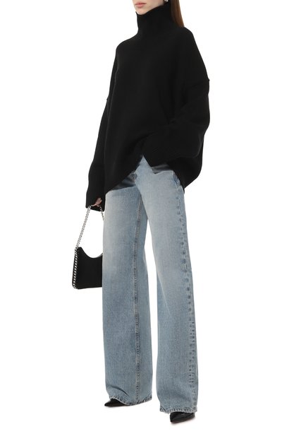 Свитер с отделкой в рубчик связали из микса руна альпака и шерсти с добавлением полиэстера. Спереди и на рукавах модель декорировали перьями в тон.