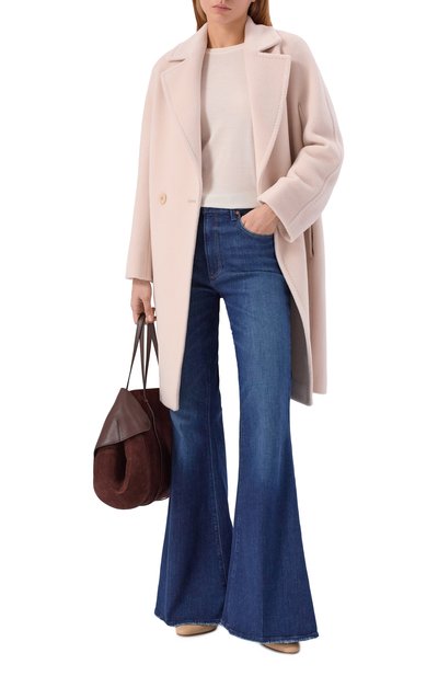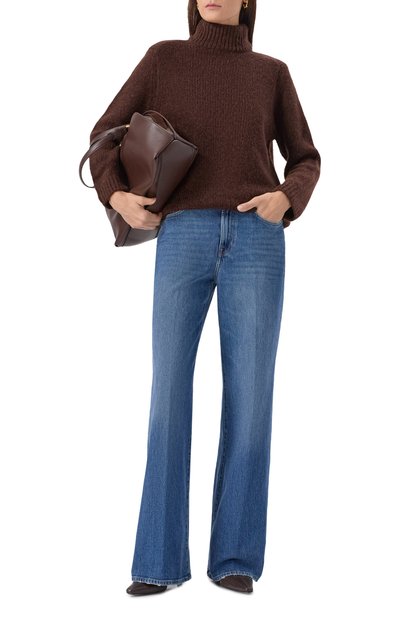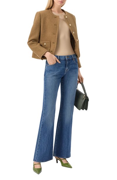 Для пошива расклешенных джинсов Retro Flare с высокой посадкой использовали эластичный хлопковый деним. Сзади модель с пятью карманами украсили фирменным патчем.