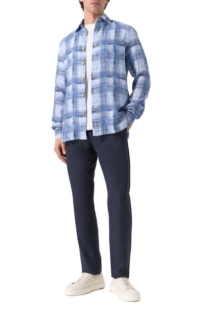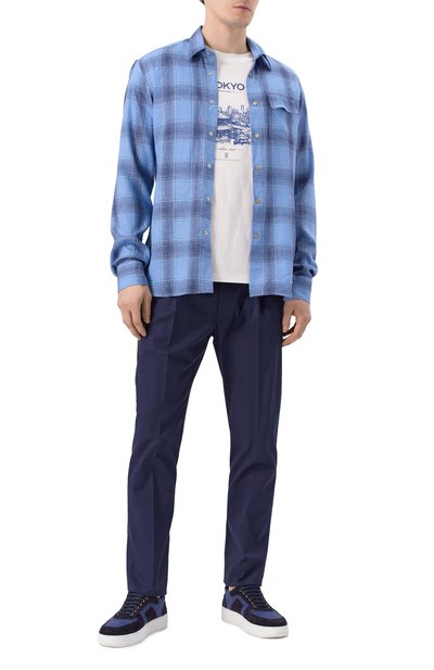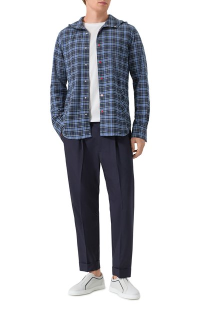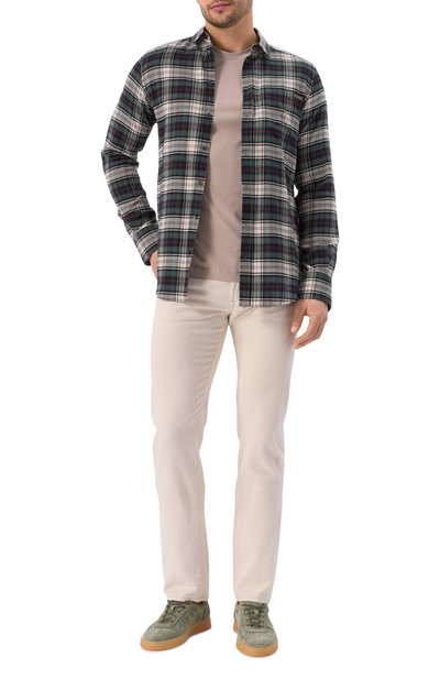 Клетчатую рубашку кроя Regular fit можно носить как сольно, так и в многослой ном образе. Для пошива модели с французским воротником и закругленным низом использовали фланель из чистого хлопка.