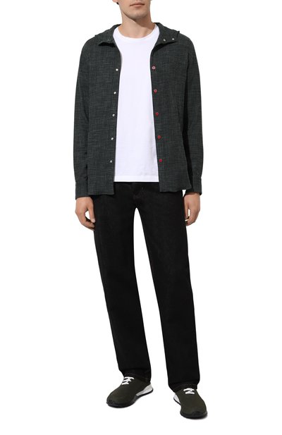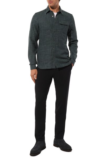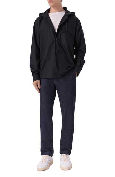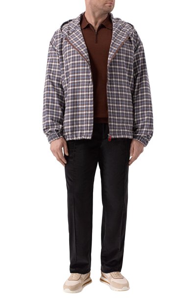 Рубашку с капюшоном, манжетами на кнопках и двумя накладными карманами можно носить как легкую куртку. Модель из хлопка с узором herringbone застегивается встречной молнией с фирменными алыми пуллерами.
