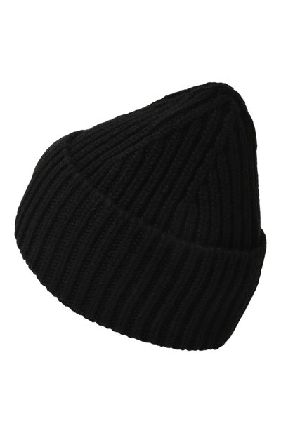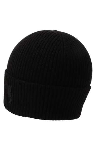 Шапку бини с широким отворотом в рубчик связали из чистого кашемира. Принадлежность марке обозначили жаккардовой литерой К спереди.
