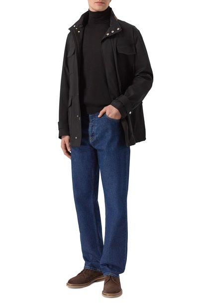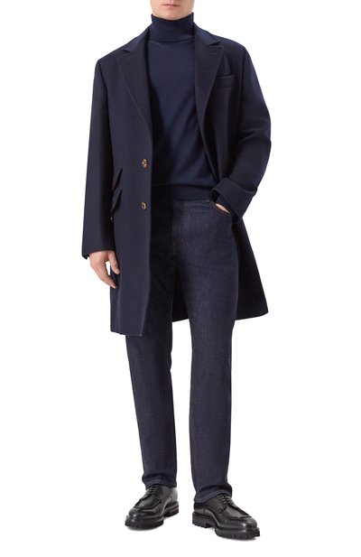 Лаконичная водолазка с эластичными манжетами и поясом органично дополнит базовый гардероб. Для создания модели с отворотом на горловине выбрали чистый кашемир.