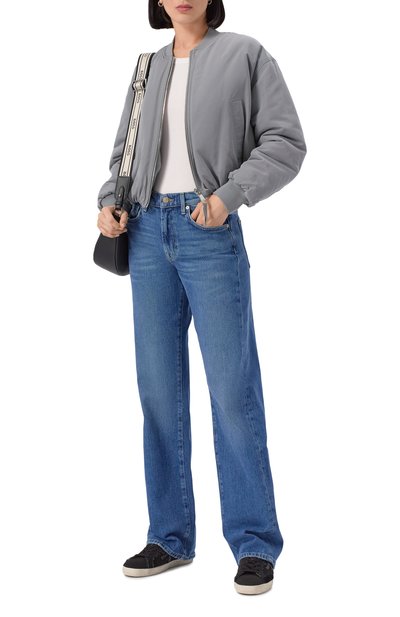 Бомбер с высоким воротом, рукавами реглан и боковыми карманами выполнили из эластичного фланелевого джерси на основе шерсти и полиэстера. Куртка с эластичными поясом и манжетами застегивается молнией.