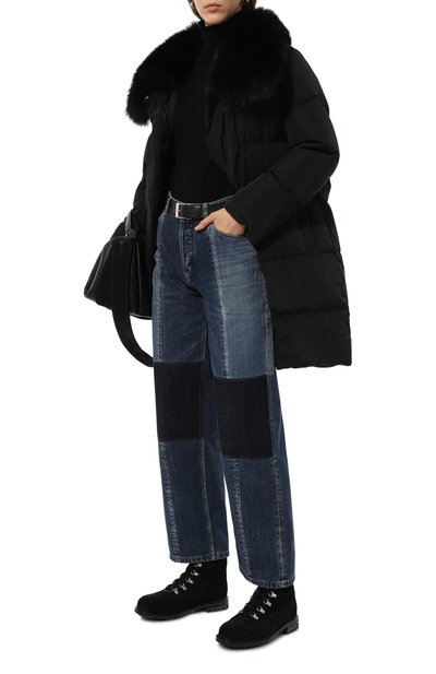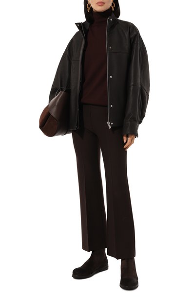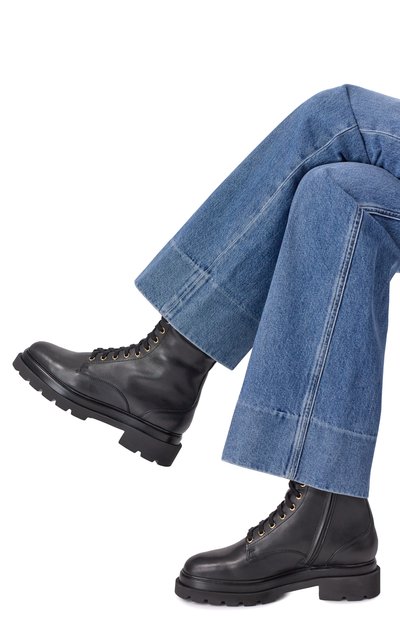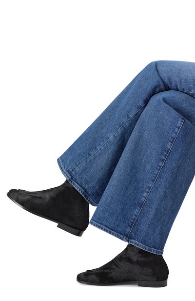 Ботинки на тонкой кожаной подошве с небольшим каблуком выполнили из замши. Однотонная модель с круглым мысом застегивается потайной молнией сбоку.