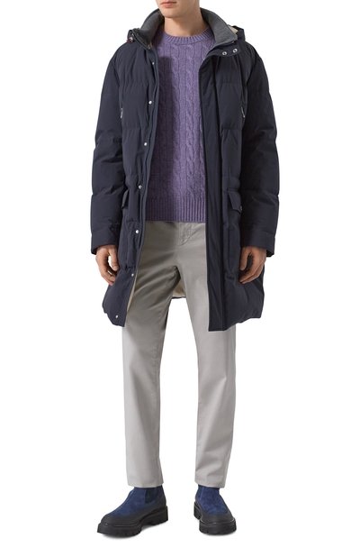 Челси с круглым мысом изготовили из выделанной вручную замши. Модель с эластичными текстильными вставками по бокам поставили на широкую подошву с глубоким протектором.