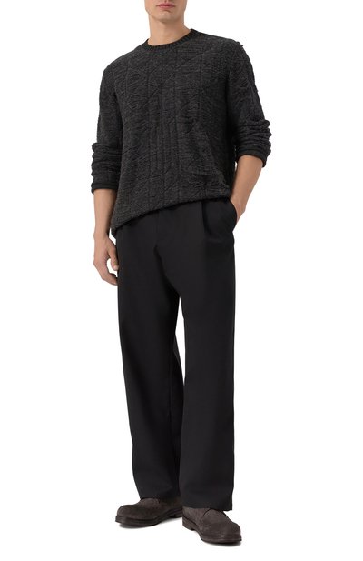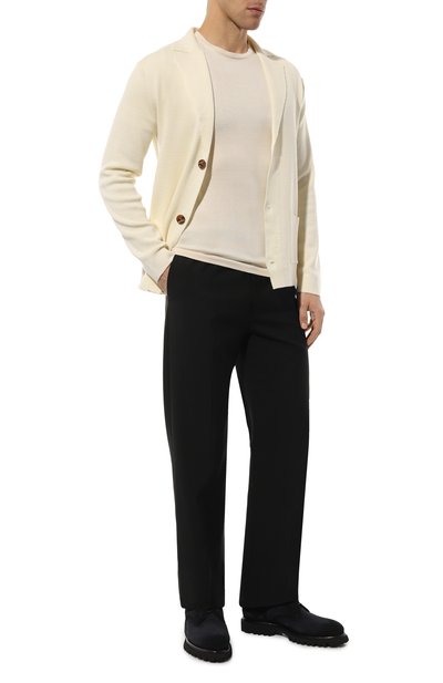 Дерби на широкой подошве с глубоким протектором изготовили из замши. Внутри модель рельефным швом на союзке утеплили густой овчиной.