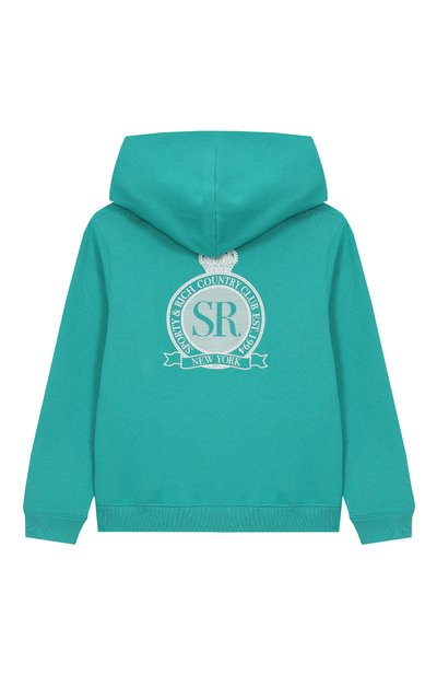 Худи из флиса на основе хлопка и полиэстера дополнили карманом «кенгуру». Модель с манжетами и поясом в рубчик украсили логотипом марки спереди и крупной надписью Drink More Water! сзади.
