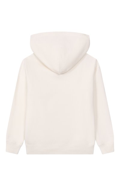 Худи с карманом «кенгуру» сшили из меланжевого микса полиэстера и хлопка. Модель с объемным капюшоном украсили логотипом марки спереди и крупной надписью сзади.