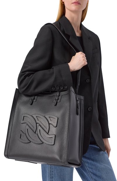 Для изготовления сумки Belted, прошитой контрастной строчкой, использовали зернистую яловую кожу. Аксессуар с тремя накладными внутренними карманами и регулируемым ремнем закрывается на карабин.