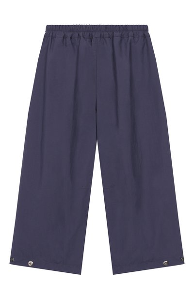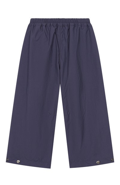 Широкие брюки с подкладом из хлопка выполнили из переработанного нейлона. Модель с внутренней кулиской на поясе, боковыми карманами и регулируемыми кнопками снизу декорировали патчем с логотипом спереди.