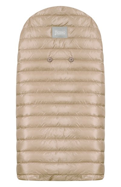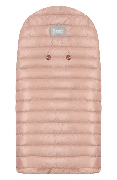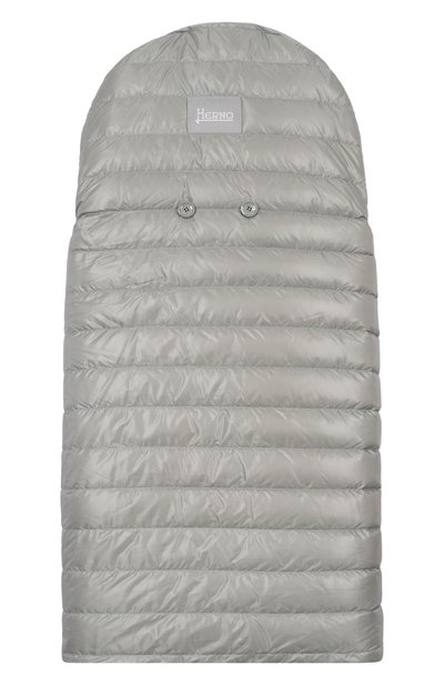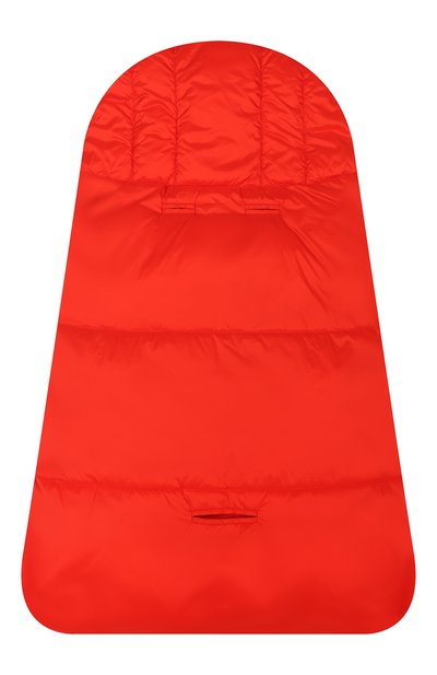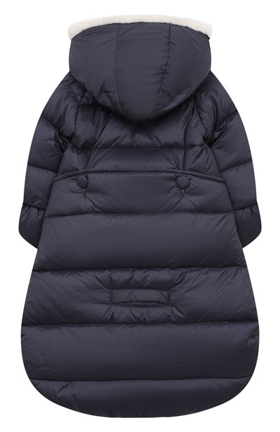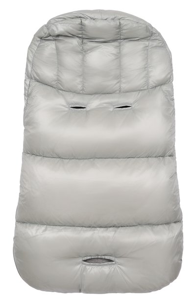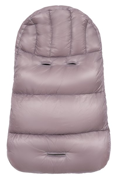 Стеганый конверт-комбинезон на утином пуху выполнили из полиэстера Super Microft®, а для изготовления подкладки использовали хлопок. Модель с прорезями для ремней автолюльки, капюшоном и съемными варежками застегивается смещенной вправо молнией.