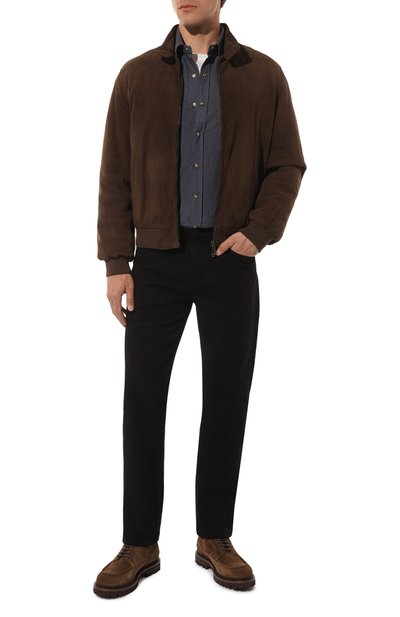 Джинсы Brody кроя Slim fit выполнили из эластичного денима. Модель с пятью карманами украсили брендированным ярлыком сбоку и кожаным патчем на поясе сзади.