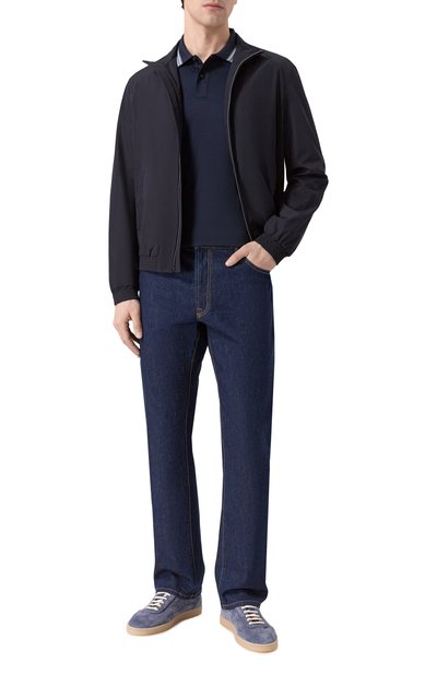 Поло Peduzzi рельефной вязки выполнили из мерсеризованного хлопка. Трикотажные воротник и манжеты подчеркнули узкой полосой. Модель застегивается короткой молнией с брендированным пуллером.