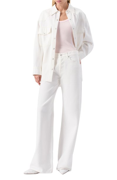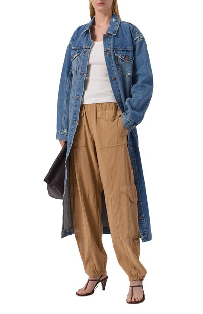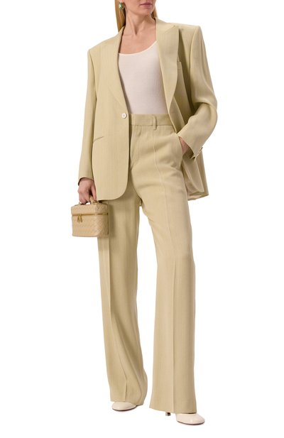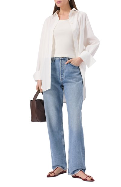 Укороченный топ прямого кроя выполнили из трикотажа на основе вискозы и полиамида. Сзади модель с U-образными вырезами украсили металлической брендированной пластиной.