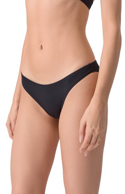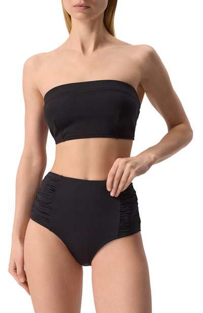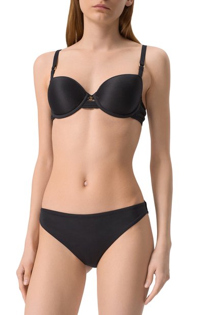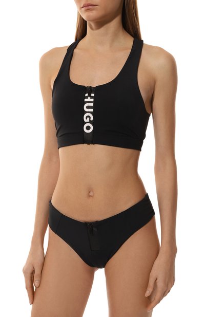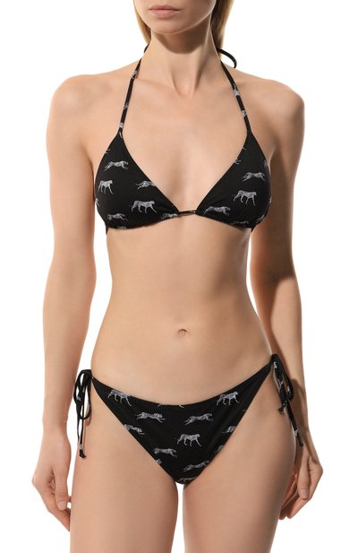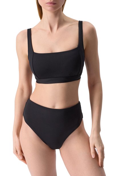 Для изготовления плавок-бикини использовали гладкий нейлон с добавлением эластана. Сзади модель украсили контрастным логотипом бренда.