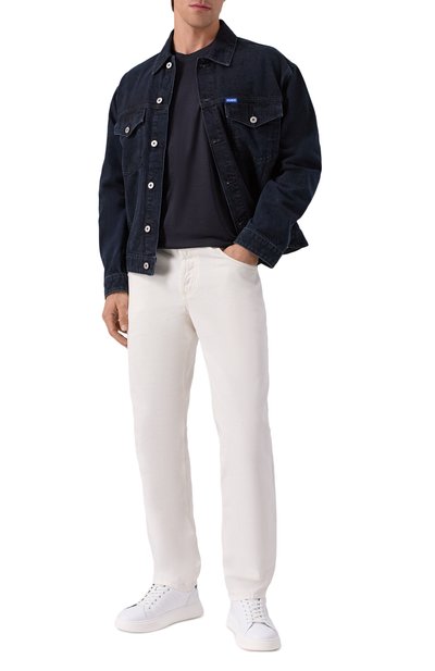 Джинсовую куртку с двумя боковыми и парой нагрудных карманов дополнили регулируемыми патами на поясе. Модель из чистого хлопка украсили брендированным патчем сзади и небольшим ярлыком спереди.