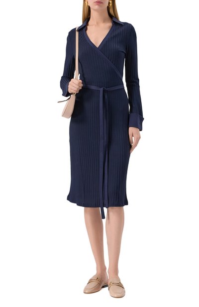 Приталенное платье-рубашку Kreli сшили из струящегося атласа. Модель с асимметричным подолом и драпировками застегивается брендированными пуговицами.