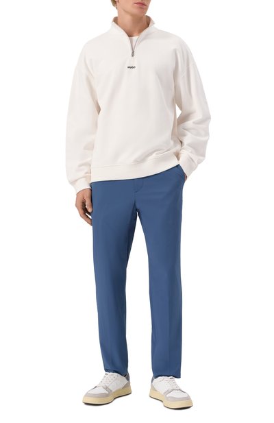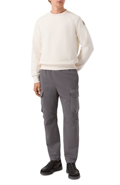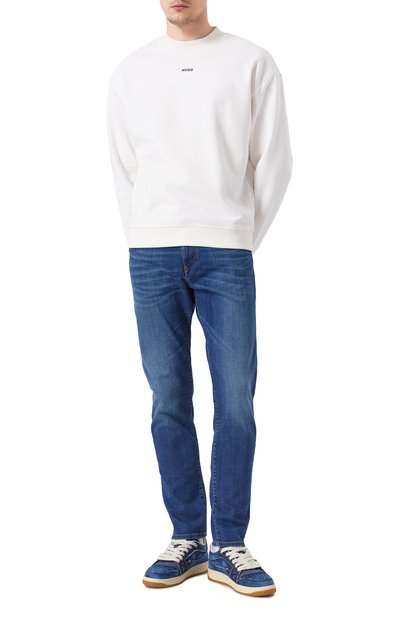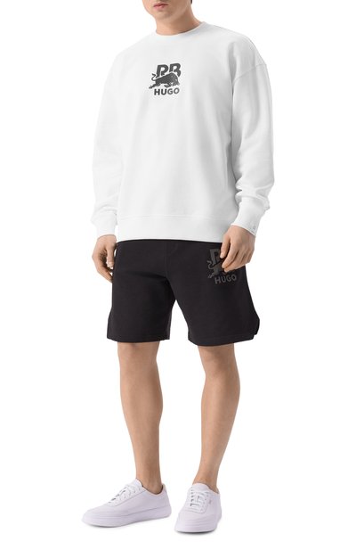 Свитшот Dubraxo с круглой горловиной в рубчик выполнили из хлопкового трикотажа. Спереди модель украсили логотипом фирменного алого оттенка, а сзади – графичным изображением собаки.