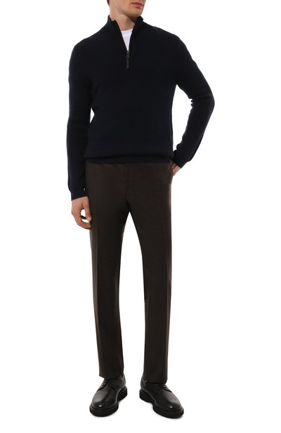 Джемпер с фактурными вставками в тон на плечах и по бокам связали плотностью 12 петель на дюйм из шерсти первого пострига с добавлением полиэ стера. Рукав модели дополнили фирменным съемным патчем.