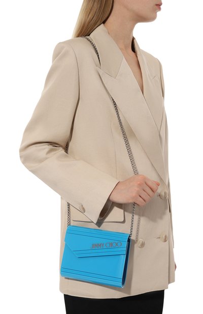 Стеганый клатч Curve с внутренним карманом на молнии сшили из бархата. Клапан с магнитной кнопкой украсили золотистой монограммой JC с кристаллами. Аксессуар дополнили съемным плечевым ремешком-цепочкой.