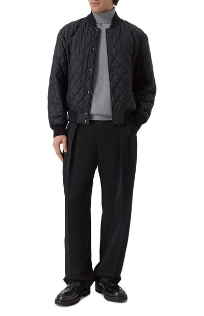 Стеганый бомбер с рельефным брендированным узором на поясе в рубчик сшили из водостойкого нейлона. Модель на хлопковом подкладе с мотивом Burberry Check и вельветовым отложным воротником дополнили боковыми карманами. Куртка застегивается встречной молнией с пуллерами B-cut.