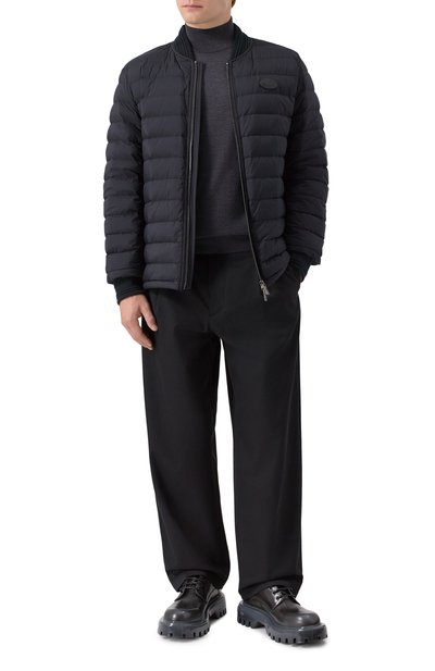 Стеганый бомбер с рельефным брендированным узором на поясе в рубчик сшили из водостойкого нейлона. Модел ь на хлопковом подкладе с мотивом Burberry Check и вельветовым отложным воротником дополнили боковыми карманами. Куртка застегивается встречной молнией с пуллерами B-cut.