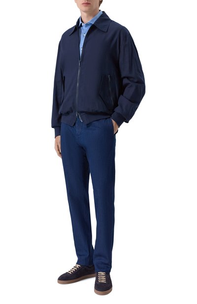 Обхват груди 128 см, обхват талии 118 см, длина рукава от плечевого шва 67 см, длина изделия по спинке 82 см. Крой Slim fit. Манжеты на кнопках.