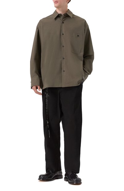 Для создания рубашки с закругленной линией низа выбрали вельвет из чистого хлопка. Модель на кнопках с кабошонами дополнили нагрудными карманами с клапанами.
