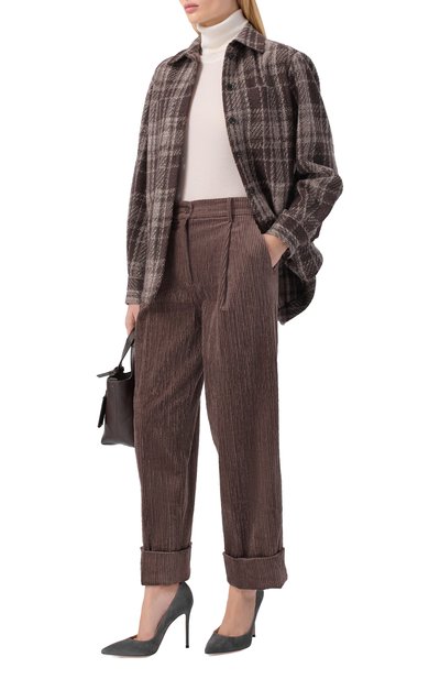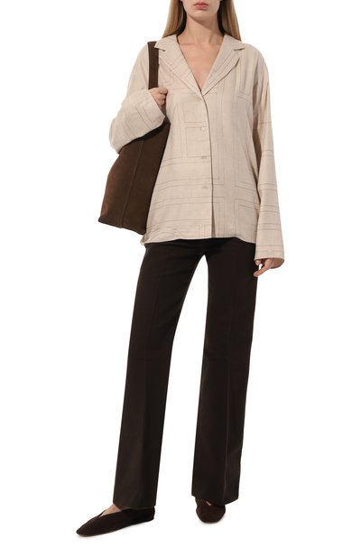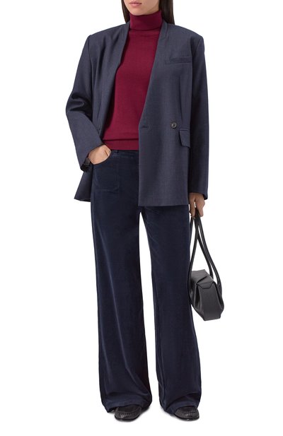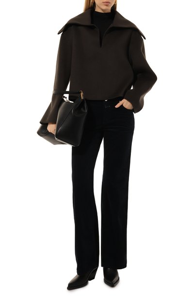 Расклешенные брюки Anessa выполнили из эластичного микровельвета на основе хлопка и модала. Модель с завышенной талией дополнили боковыми и задними карманами.