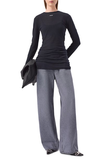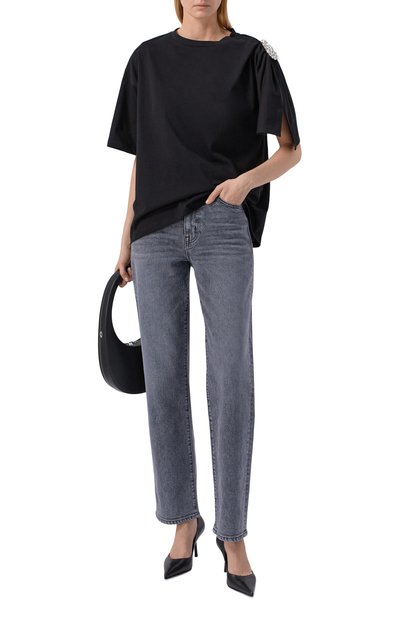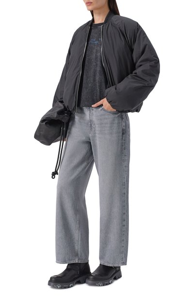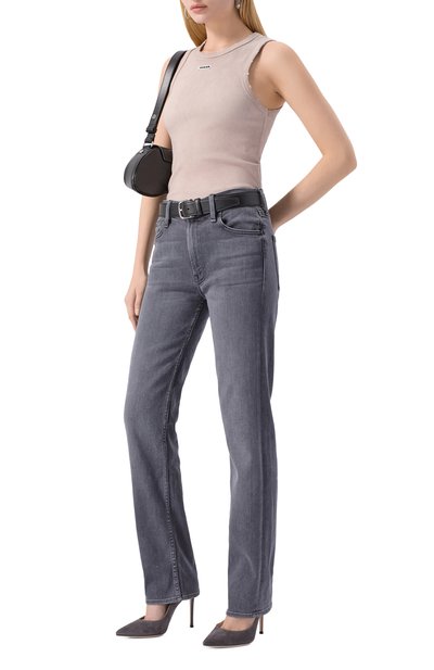 Джинсы Mason Ankle с пятью карманами украсили брендированным жакроном на поясе сзади. Для пошива слегка укороченной модели оттенка Smokey grey использовали фирменный эластичный деним Transcend Vintage.